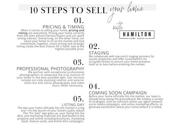 Review our 10 Steps to Selling and complete our Seller Questionnaire so we can prepare a customized market analysis tailored to your home and your goals.